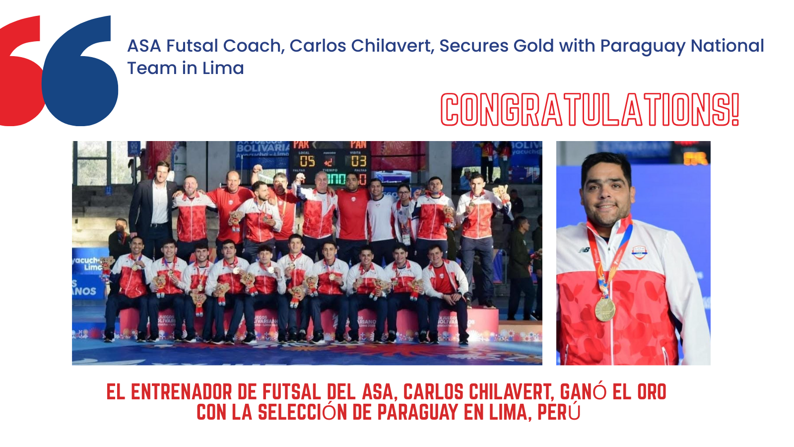 ASA celebrates a historic achievement by its Futsal coach, Carlos Chilavert, who also serves as the head...