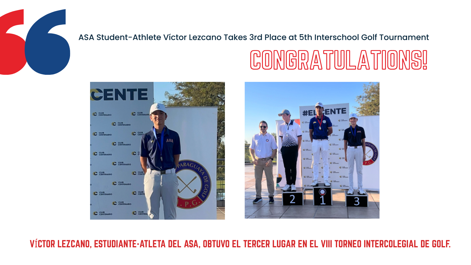 We are proud to share that our ASA athlete Víctor Lezcano represented the school at the VIII Torneo Intercolegial de Golf, organized by the Paraguayan Golf Association at Club Centenario on July 6th. Víctor earned 3rd place in the APG...