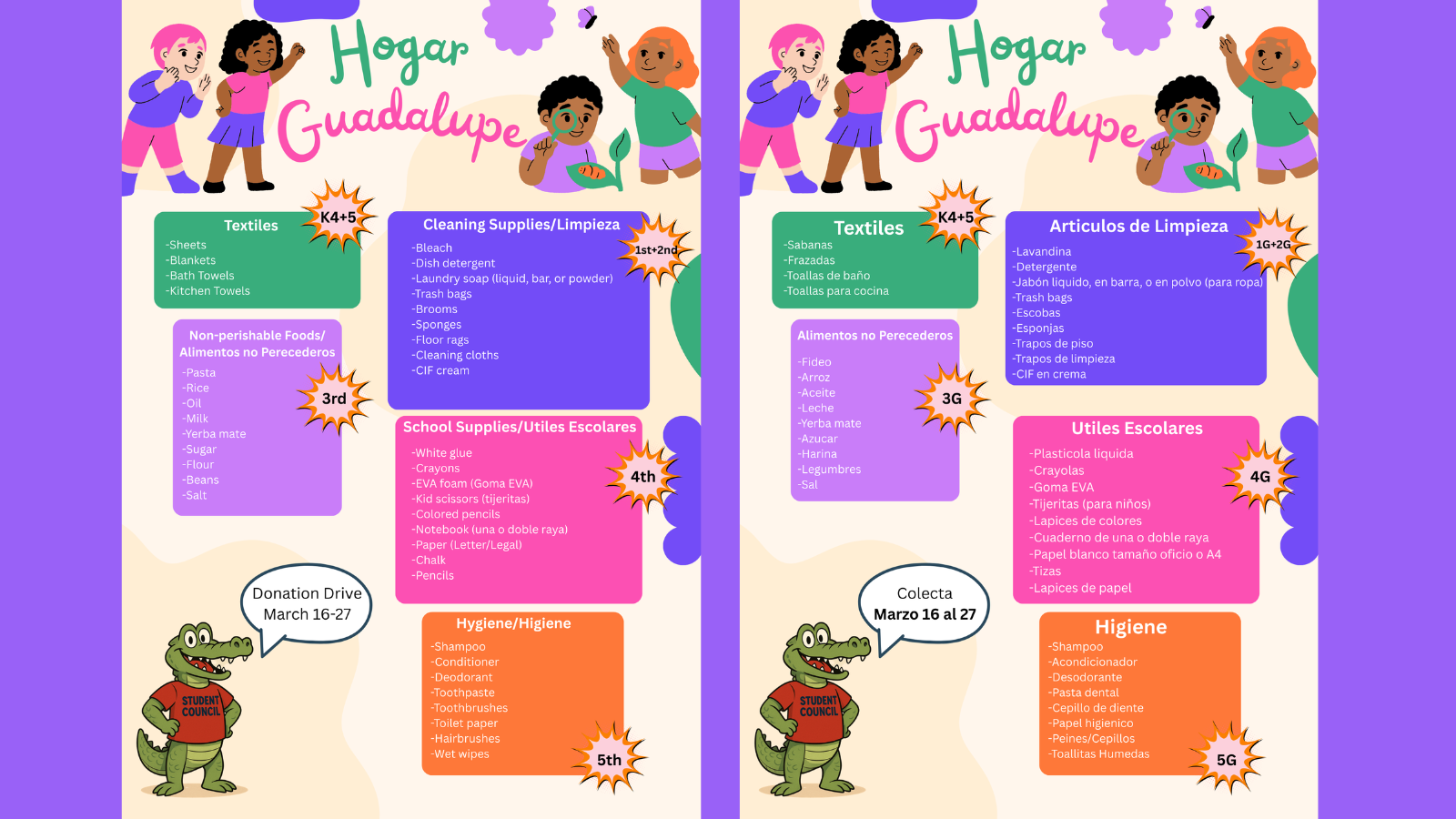 The Elementary School Student Council (ES STUCO) is organizing a donation drive to benefit Hogar Guadalupe,...
