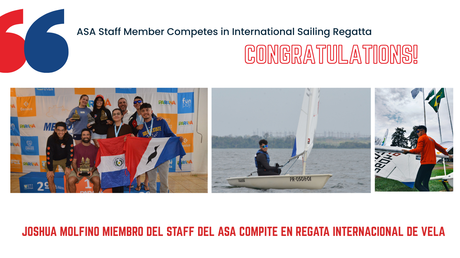 ASA school library assistant Joshua Molfino competed in his first international ILCA regatta from September 12-14 at the 2025 ILCA Mercosur Cup in Foz do Iguaçu, Brazil. Racing on the Paraná River in the ILCA 6 (Radial) class, Joshua...